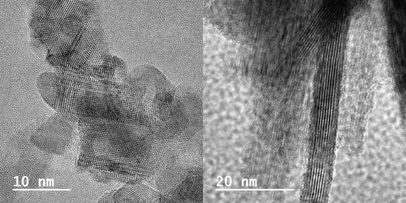 It is exceptionally rare to find pure metal sulfides in nature. Most naturally occurring iron-, copper-, zinc-, and lead-sulfide have other metal elements incorporated in their crystal structures. How the co-existence of multiple metal elements may affect the structure and resultant stability/reactivity of metal sulfide phases, particularly those in the nanoscale regime, however, remains, for the most part, a mystery. In this project, we will investigate biogenic versus abiogenic mixed metal sulfide nanominerals, e.g., Fe-Zn, Fe-Cu, and Fe-Co sulfide systems. Our focus will still be these nanominerals' crystal structure, formation mechanisms, and reactivities. (Images below: self-assembly of biogenic ZnS nanocrystals; and transformation of biogenic Fe-sulfide from an amorphous structure to nanorods.)
